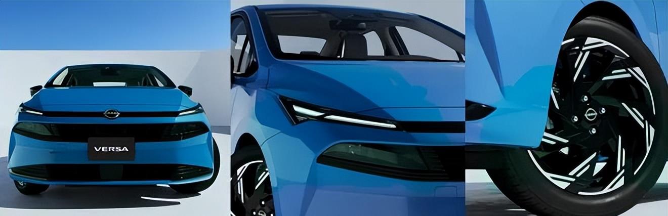 先说外观,这次日产下手挺狠的。全新Versa用上了家族最新的设计语言,最扎眼的就是那个分体式大灯。上面那条细长的LED日行灯,中间用一根亮黑饰条贯穿,直接把日产LOGO托了起来,看着挺精神。往下看,前包围分成了两层,上半部分是格栅,做了条幅式中网,两侧的远近光灯直接嵌进去了,整体感很强;下半部分是梯形进气口,两边还加了镀铬条点缀,多少给这台小车添了点精致感。